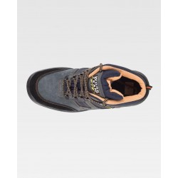 Bota de croute com cordões. Tipo trekking. Sola PU bidensidade. Biqueira e palmilha de aço. Propriedades antiestáticas. Absorção da energia naz ona do salto. Resistente aos hidrocarbonetos. Resistente à perfurãçao. Resistência ao deslizamento sobre ladrilho cerâmico com dissolução de sabão e sobre aço com glicerina.